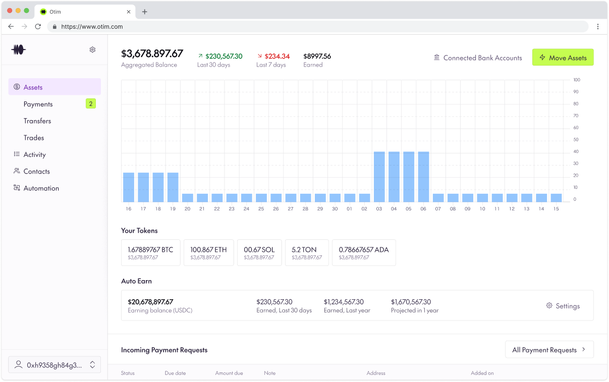 Think of Orchestrators as webhooks for money. You define where you want funds to end up (a yield vault, a bank account, a settlement currency on a specific chain) and Otim generates a unique address. Send any asset to that address, and it automatically routes and transforms on autopilot.
