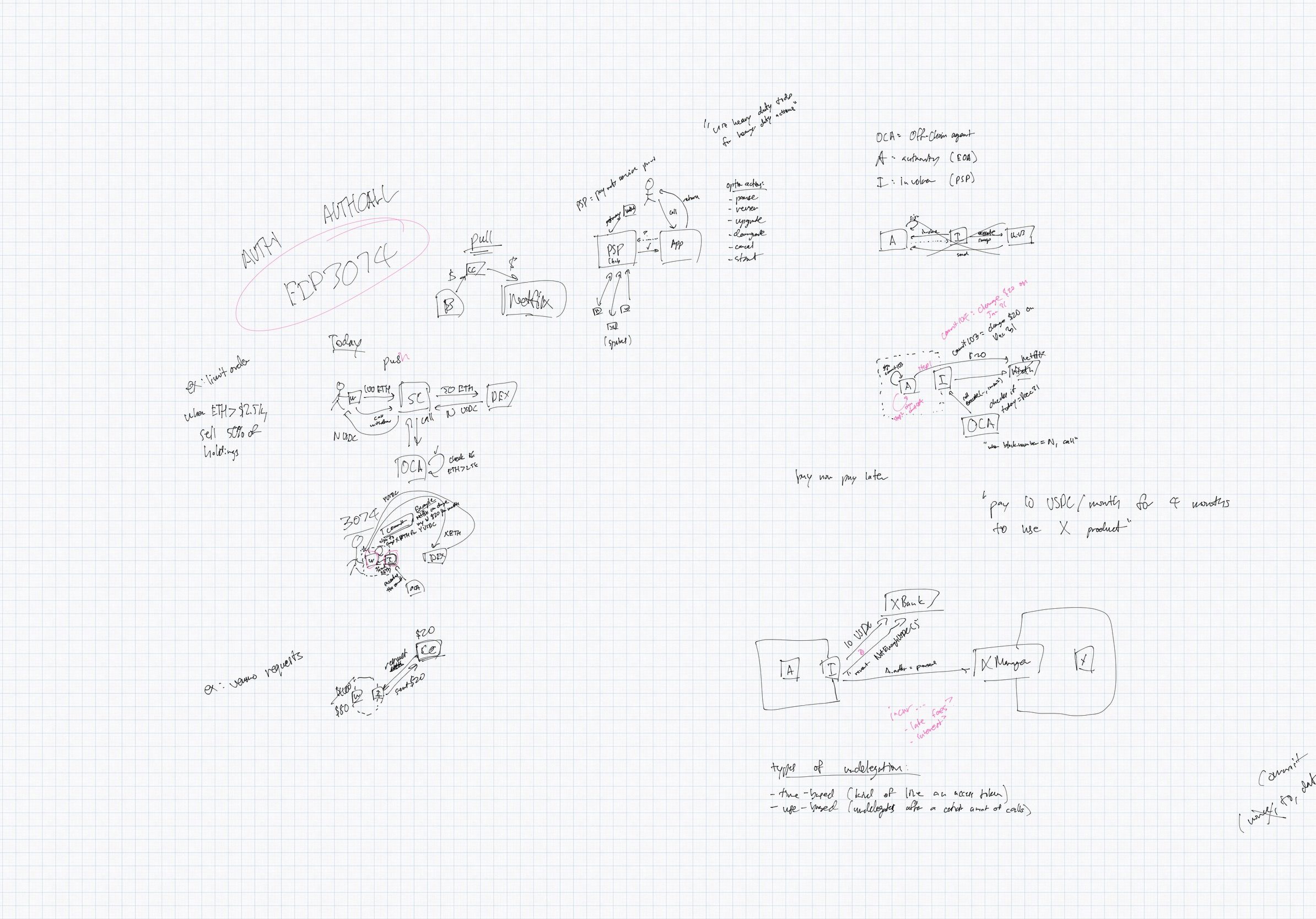 Behind the scenes, we were sketching out the broader vision on iPads and whiteboards—mapping out how recurring subscriptions would work, what would happen if ETH values fluctuated, how escrow payment services could function. Every diagram was a piece of the future we were fighting to build.